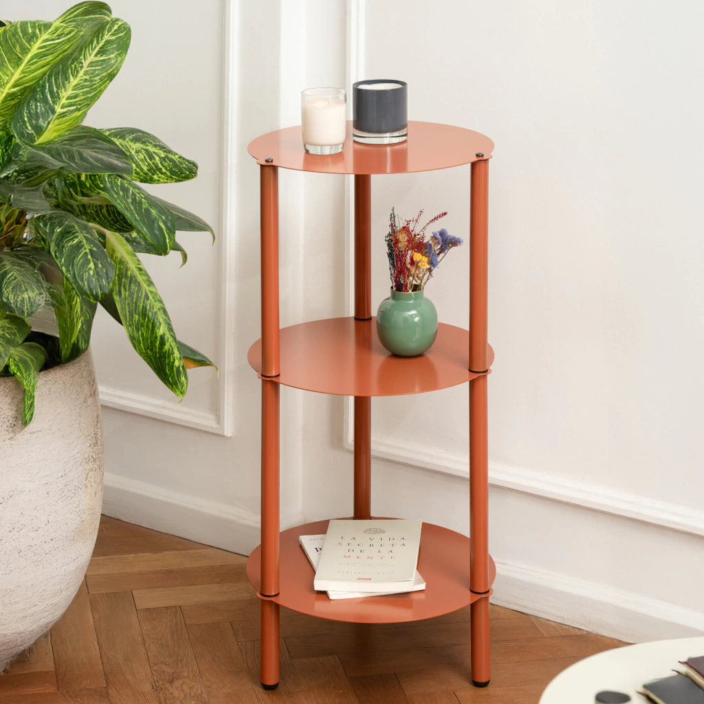 Nueva mesa auxiliar de chapa y caño de 3 pisos. Muy fácil de armar, no necesitas ningún tipo de herramienta. Podes agregarle plantas, deco, lámparas y muchas cosas más, para darle un espacio único a tu hogar. Sirve como biblioteca para un rincón. Encontrala en más de 5 colores, pintada con pintura al horno epoxi.