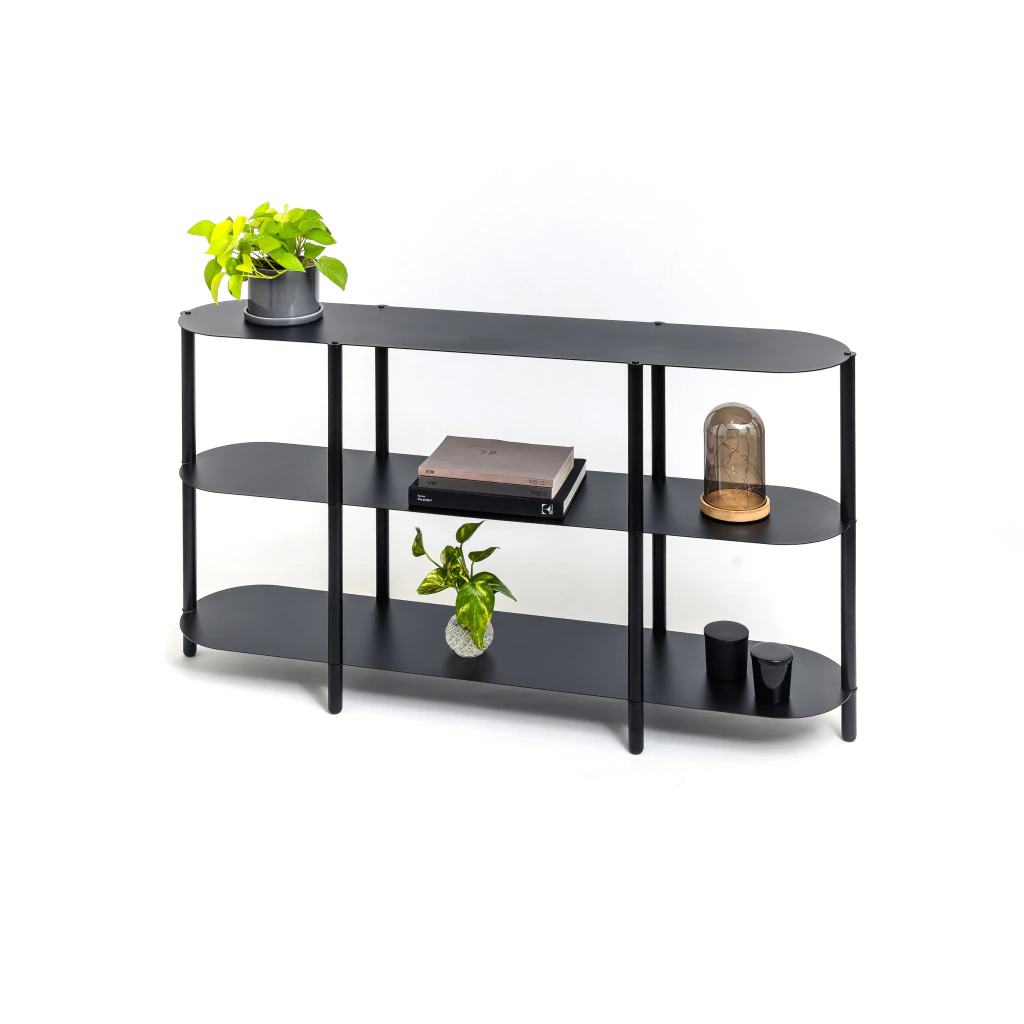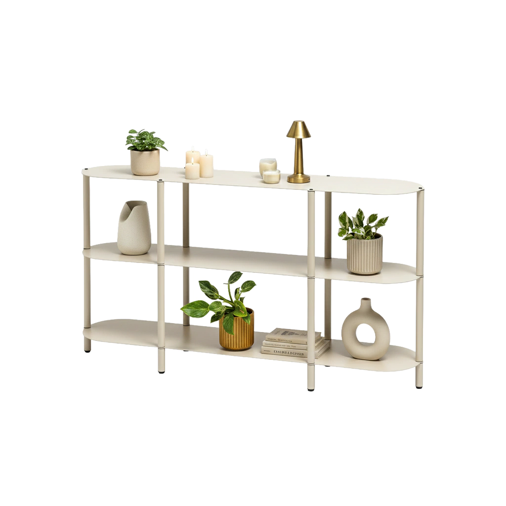 Este rack combina superficie amplia con estructura liviana, ideal para pantallas grandes y equipos electrónicos. Con estantes amplios y espacio libre inferior, permite sumar objetos deco, cajas de guardado o plantas sin perder funcionalidad. Su base alta facilita la limpieza y aporta aire visual al ambiente.