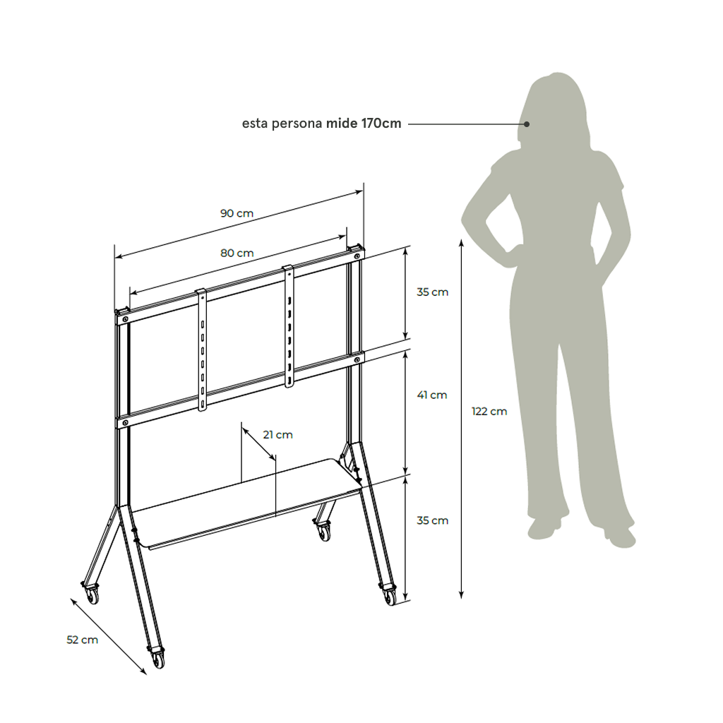 Es compatible con la mayoría de los televisores o monitores de 24” a 60”, tanto pantallas planas como curvas (LCD, LED u OLED). Soporta medidas VESA desde 100×100 mm hasta 400×400 mm, por lo que se adapta sin problema a la mayoría de los TVs que se usan en hogares y oficinas.