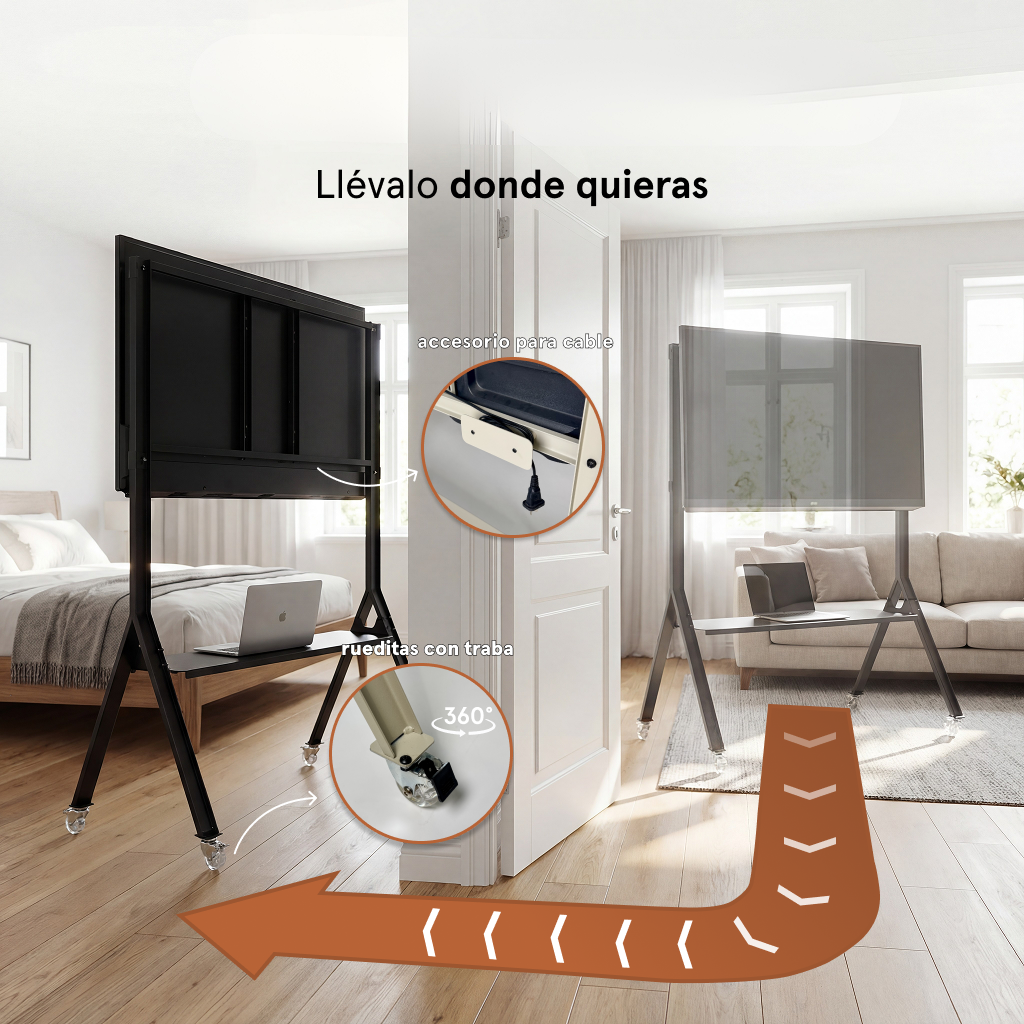 El Rack de TV Móvil CH31 te permite usar un solo televisor en distintos ambientes, sin agujerear paredes ni sumar gastos extras.